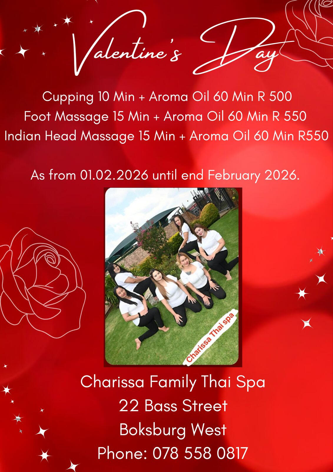 Don't miss out on our specials at Charissa Family Thai Spa! Whether you're looking to relax, rejuvenate, or refresh, our expert therapists provide soothing treatments that will leave you feeling your best. It’s the perfect way to escape the heat and unwind.Book Now and Experience: